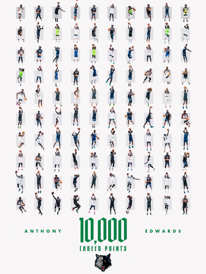 此役,森林狼球星爱德华兹本场得到25分7篮板9助攻1抢断1盖帽,NBA生涯常规赛总得分突破10000(10002分)大关。