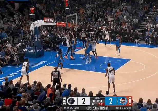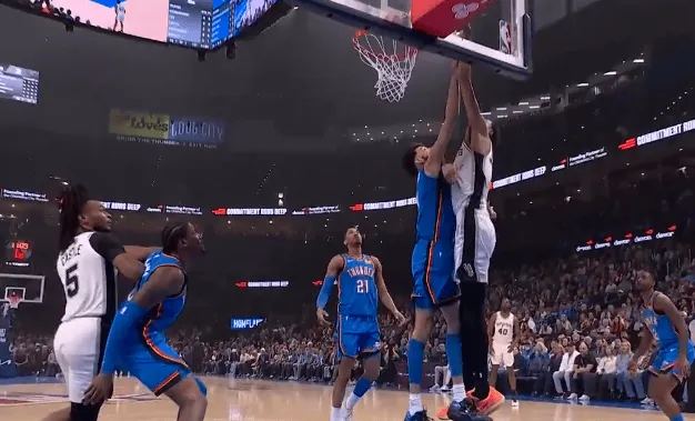 虎扑01月14日讯 NBA常规赛,雷霆对阵马刺的比赛正在进行中。第一节比赛中,文班亚马左手背身强攻霍姆格伦,强硬推至篮下直接左手隔扣。来源:虎扑 虎扑01月14日讯 NBA常规赛,雷霆对阵马刺的比赛正在进行中。第一节比赛中,文班亚马左手背身强攻霍姆格伦,强硬推至篮下直接左手隔扣。来源...